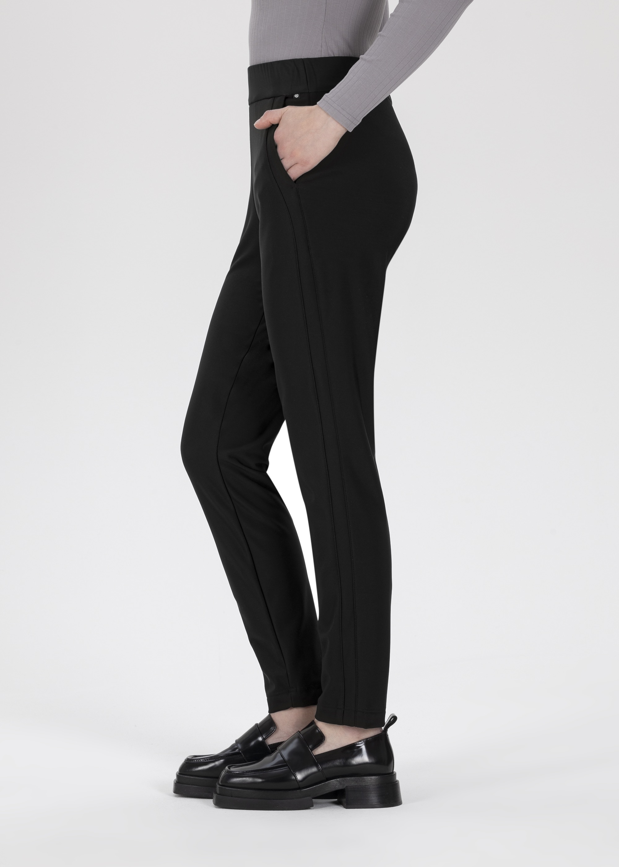 Kuschelige Pull-on Hose auf der Innenseite angeraut und mit Schrägtaschen. Schrittlänge 72cm Saumweite 30cm PA 85% EL 15%